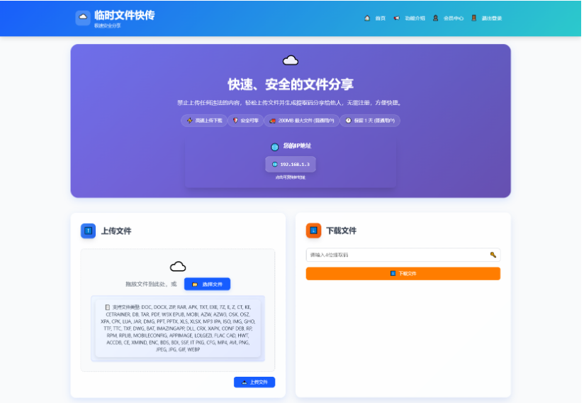 启辰源码 - 一站式源码与模板下载平台 » 全新临时文件快传系统源码 快传网盘系统 全开源附教程