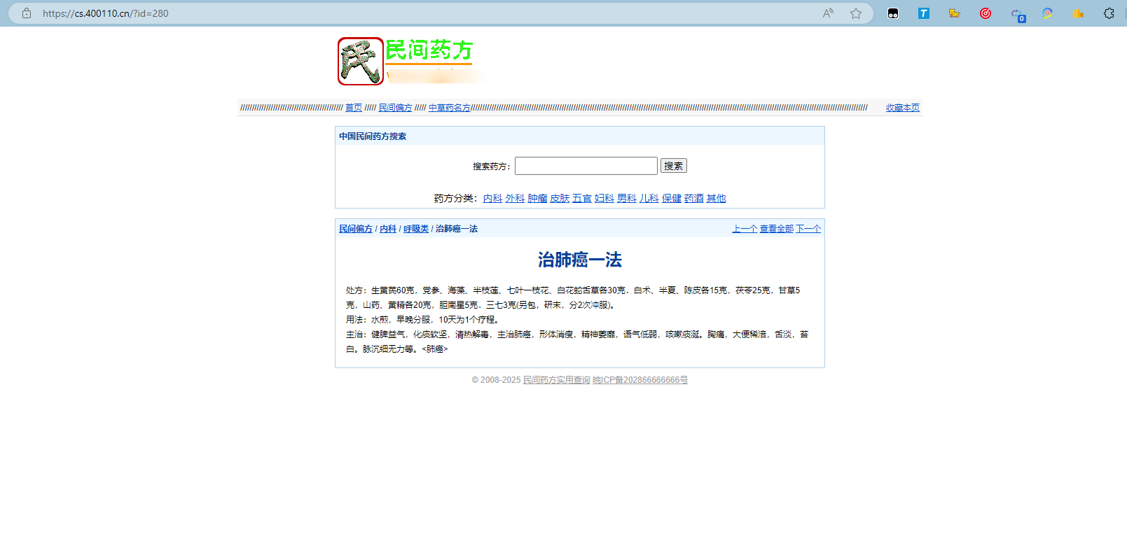 民间药方偏方网站整站源码 带数据PHP版,里面的民间偏方倒是不少