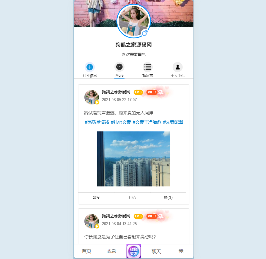 启辰源码 - 一站式源码与模板下载平台 » 社交个人主页html源码