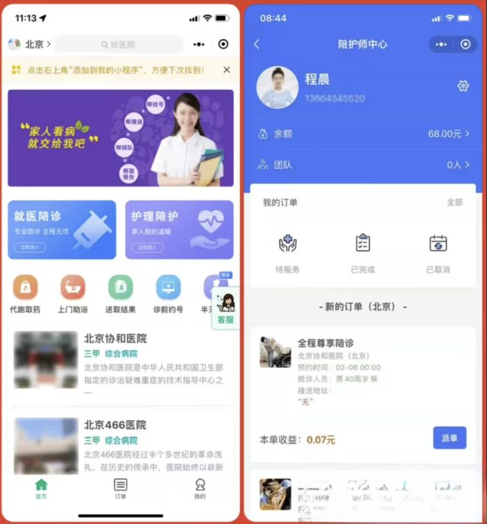 嘀嗒陪诊系统小程序源码,陪诊管家功能齐全只是单一小程序没有后端。
